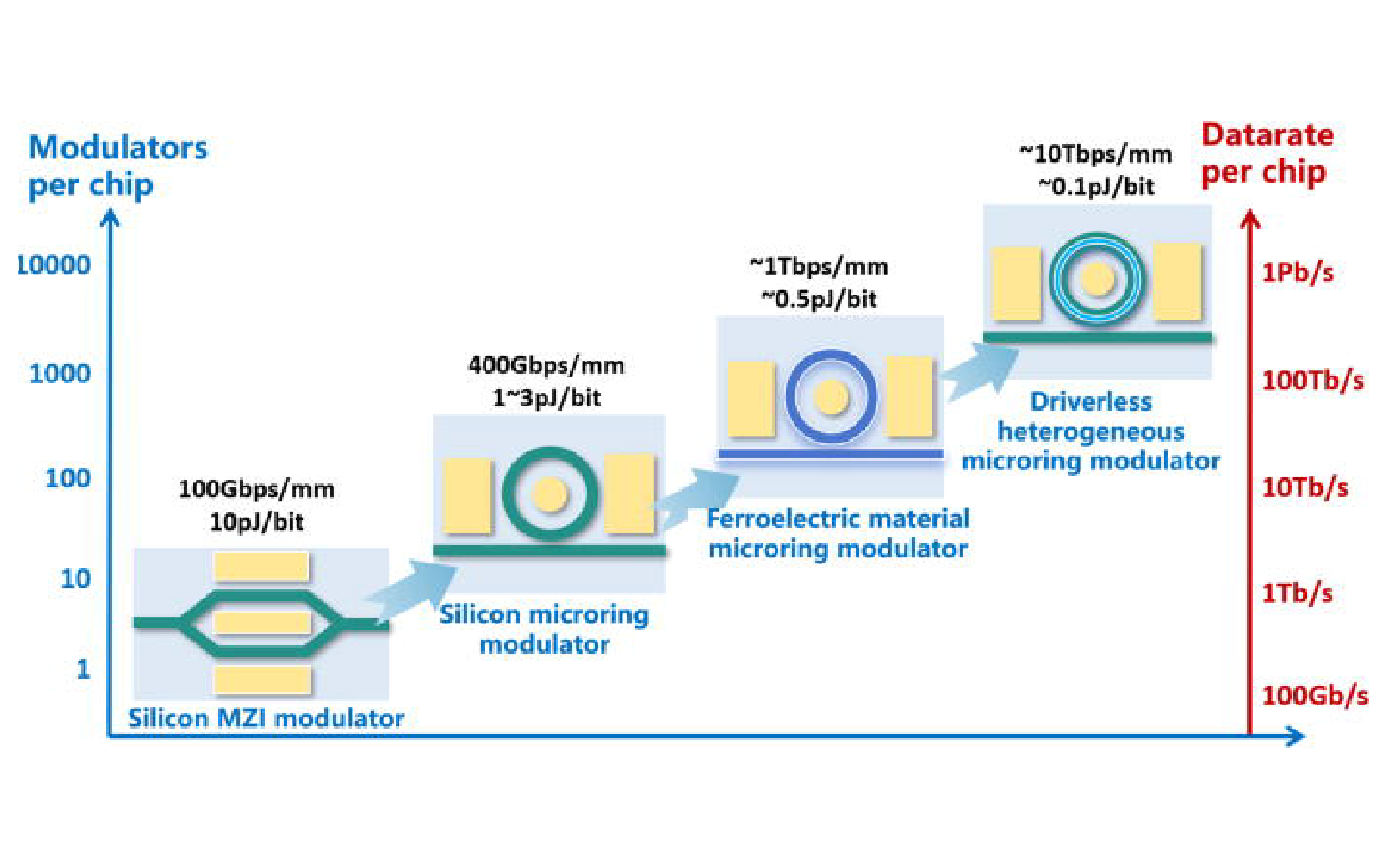 We are dedicated to exploring the core devices for optical interconnects targeting high-speed, low-power, and large-bandwidth applications. Our focus lies on designing and realizing novel integrated lasers, efficient couplers, high-speed modulators, and photodetectors, thereby advancing the realization of next-generation optoelectronic interconnection system architectures with higher integration density, lower energy consumption, and greater transmission bandwidth.